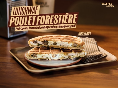 - La Gaufre Salée Poulet Forestière : un mariage fondant entre poulet moelleux, champignons entiers grillés, gouda, fromage frais, épices et persil. Une recette boisée et généreuse, parfaite pour affronter les premiers froids..